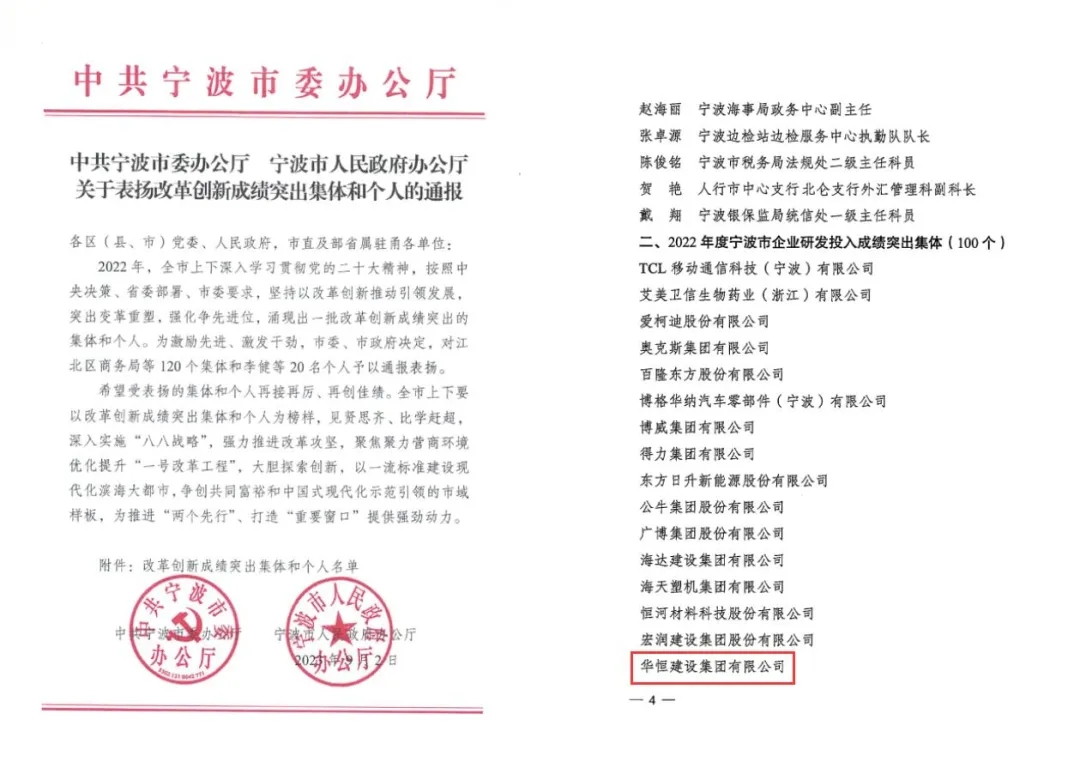 近日,中共寧波市委辦公室、寧波市人民政府辦公廳發(fā)來表彰文件《關(guān)于表揚(yáng)改革創(chuàng)新成績突出集體和個人的通報》,公司被授予“年度寧波市企業(yè)研發(fā)投入成績突出集體”稱號。