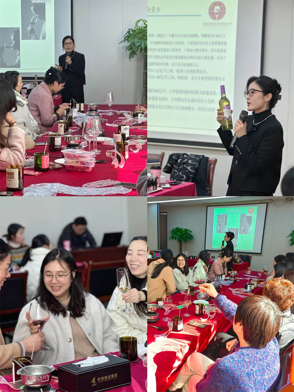 溫馨高雅的環(huán)境,舒緩悠揚的音樂,紅酒品鑒會在浪漫的氛圍中開始?;顒犹貏e邀請到了一位紅酒屆的時尚達人,寧波卷福貿易有限公司總經理、 B.CHOUETTE-貝柏軒(法國波爾多)合伙人、esw品酒師陳彩鳳老師,帶領大家從紅酒文化、歷史、地域劃分、葡萄種類、釀酒工藝到品評鑒賞,全方位領略葡萄酒的種植、采摘、榨汁、發(fā)酵、窖藏、內外包裝、釀造一流葡萄美酒的工藝以及紅酒禮儀進行了講解。全體女職工一起品味紅酒文化,感受紅酒詩韻,走進微醺優(yōu)雅的紅酒世界,了解一顆葡萄的奇幻旅程。